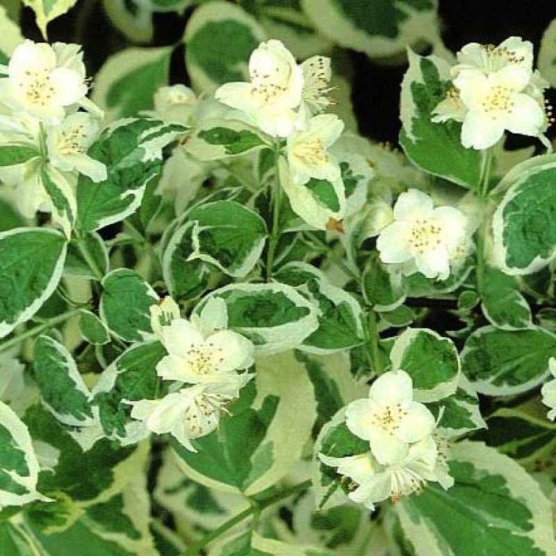 Пряморослый кустарник высотой 150-200 см, шириной 200 см, листья зелёные с кремово-белой каймой, цветки кремово-белые, простые, в соцветиях, очень ароматные, цветё в июне-июле, хорошо переносит стрижку, идеально подходит для живой изгороди, предпочитает полутень, зона 4 (до -29°С).